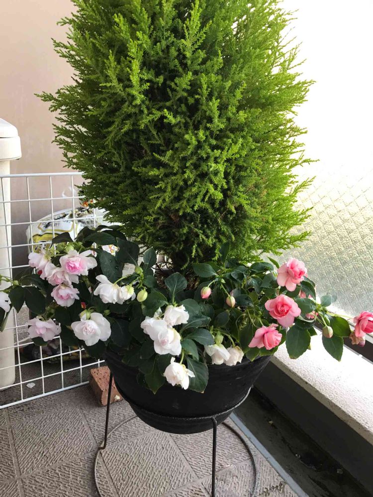 あいりょうさんのバルコニー/ベランダ,インパチェンス,コニファーの投稿画像