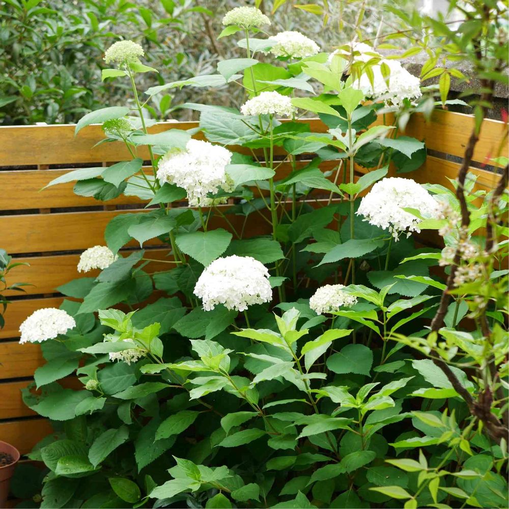 アナベルをどっさり切り花にしてみたくて、前出の鉢植えとは別に地植えにしているものです。(*ˊᵕˋ*)