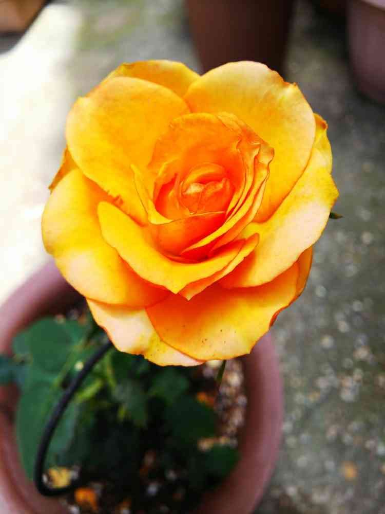以前投稿した黄色のミニバラからオレンジが咲きました🌹