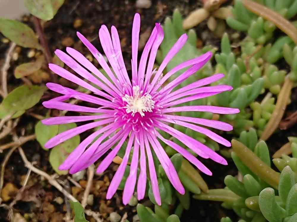 公園の縁石にこびりついていた苔みたいな植物をはがしてプランターで育てたらこんな綺麗な花が咲きました