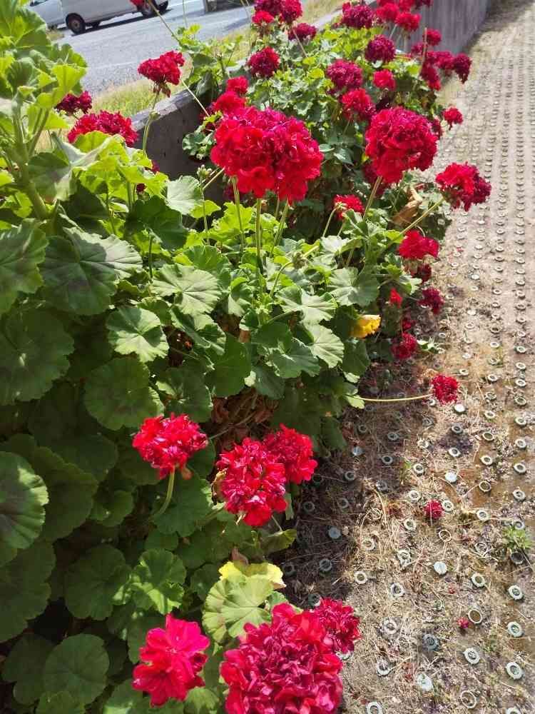 真っ赤なゼラニウム街道も素敵(*˘︶˘*).。.:*♡❤️🥀🌿💯💞🥀🌿❤️🙆🤗❤️✨