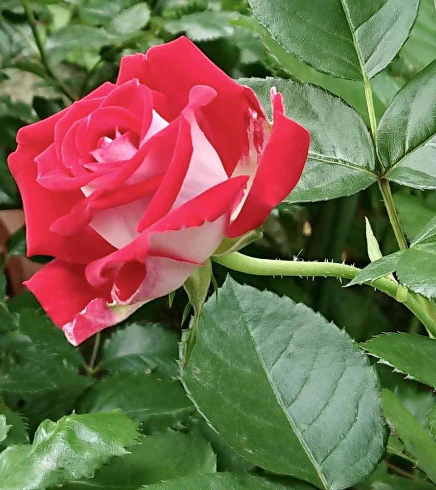 赤色の花弁に裏側が白というとってもオシャレなバラです🌹
