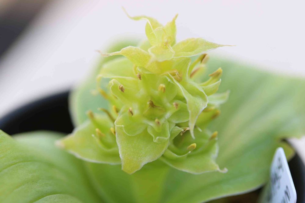 ありがとうございます😊あまりよく知らないんですけど、プスツラータみたいにもさもさしべ?にはならないようです。どちらかというと花びらかがく?の部分が目立ちますね。以前はwhiteheadia bifolia と分類されていたけど、今はmassonia bifoliaだそうで…もうよくわかりませんw