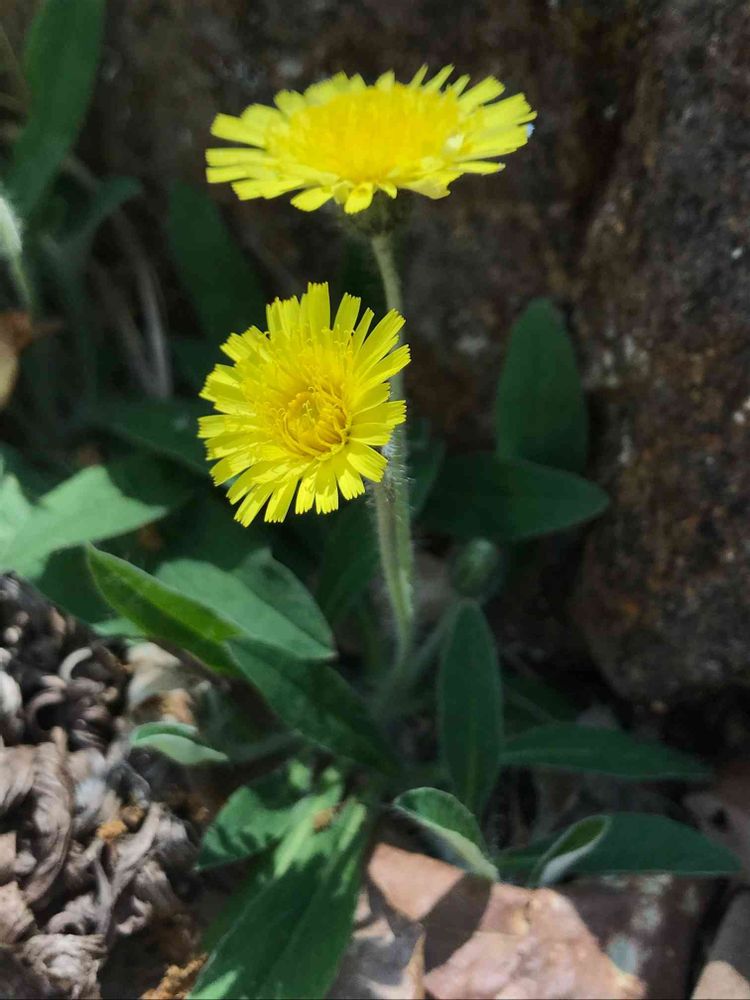 おや!この時期にタンポポ?よく見ると葉っぱは、ビロードの様な毛で覆われていましたよ。ロックガーデンに咲いてました。