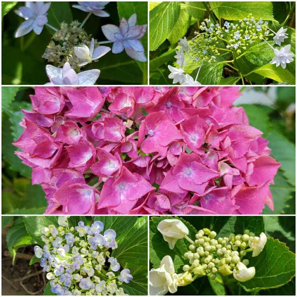 色とりどりの形が違う紫陽花が
