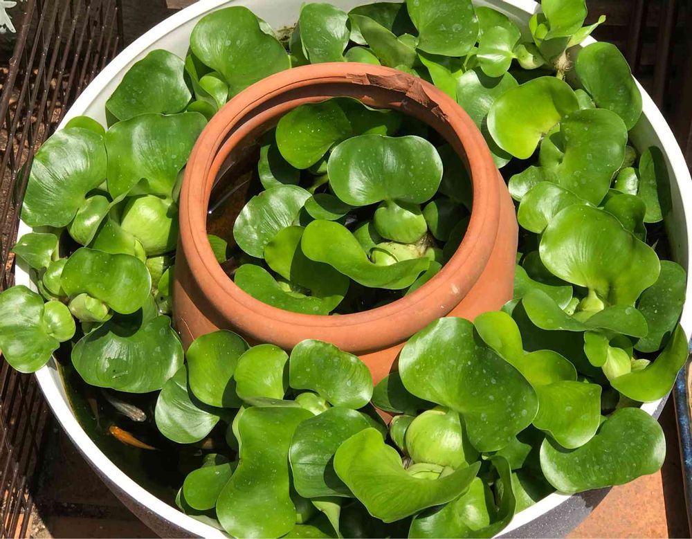 この睡蓮鉢の中に、メダカが20匹ほど😆