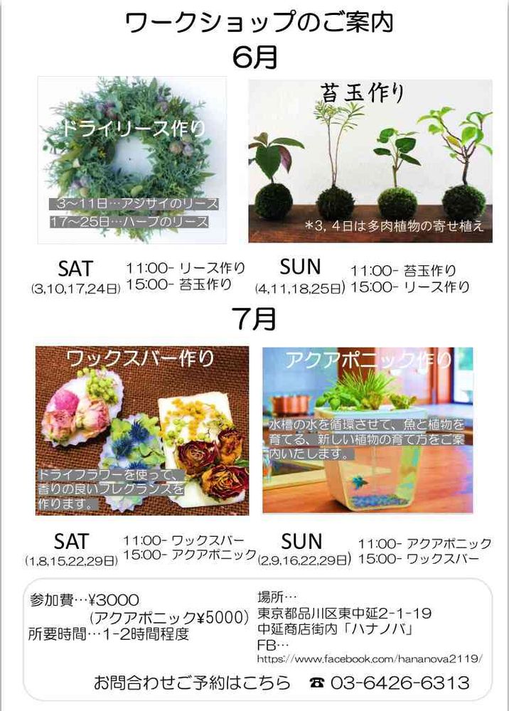ハナノバワークショップは6月7月も、目白押しです!