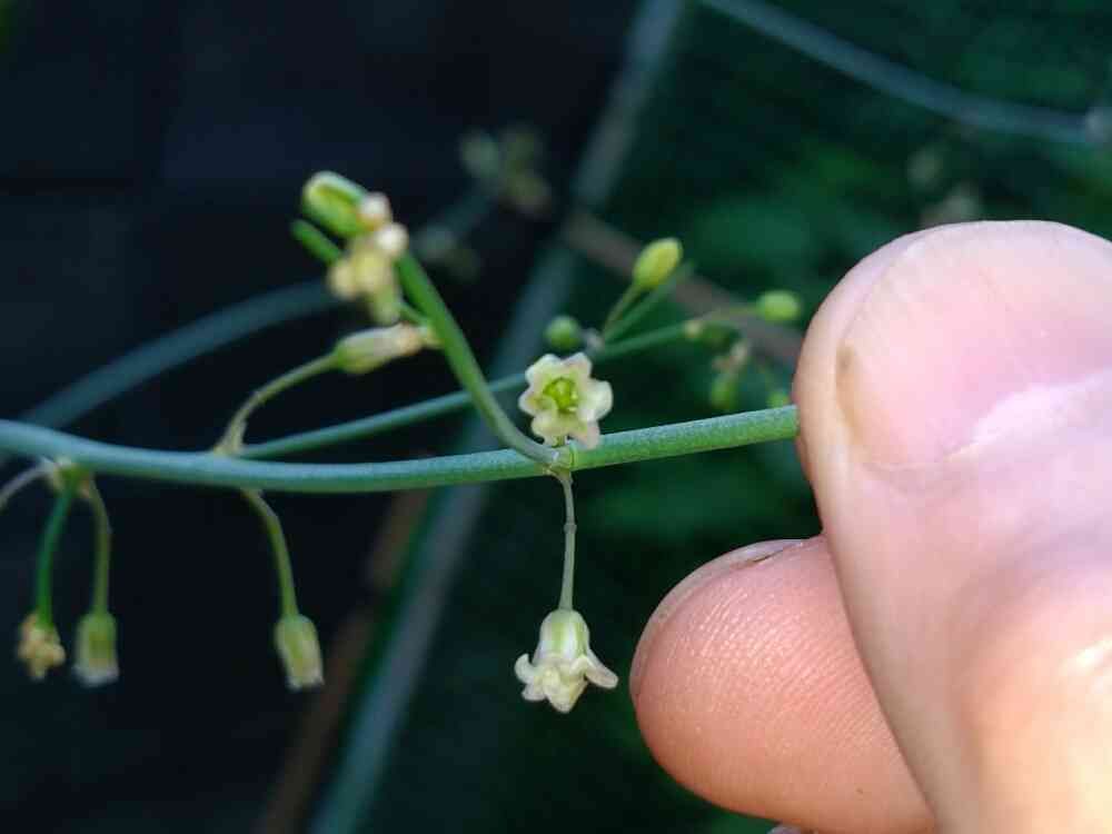 立茎中のアスパラに花が咲きました🌸😊 5ミリにも満たない大きさですが何とも愛らしい💕