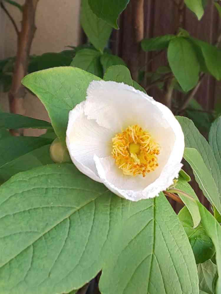 朝、玄関を出ると夏椿の花が開いていました🌼