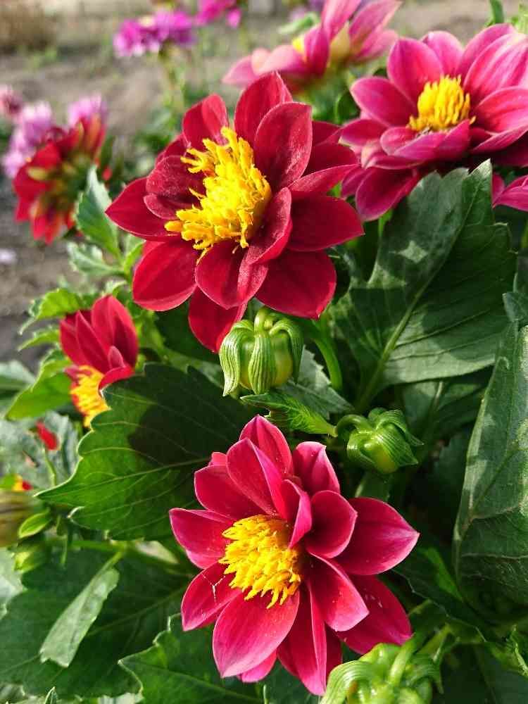 ミニダリアさんは 茎が長く伸びずに 全体的に 丸く こんもりしてますよ😊…