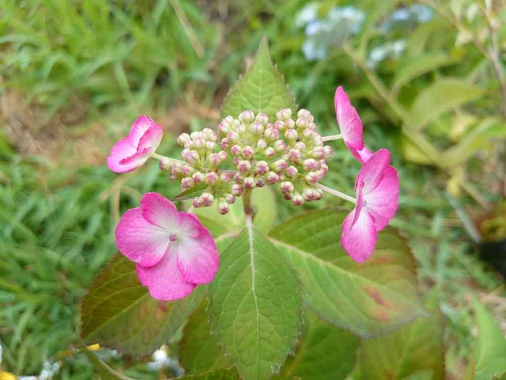 葉のツヤから見ると、ヤマアジサイ系ですね。