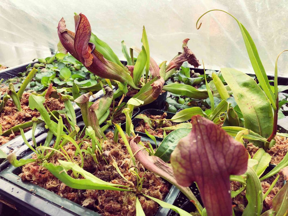 ネペンテスの子株達と、サラセニアの子株達の同居…ちょっと無理があるかな〜