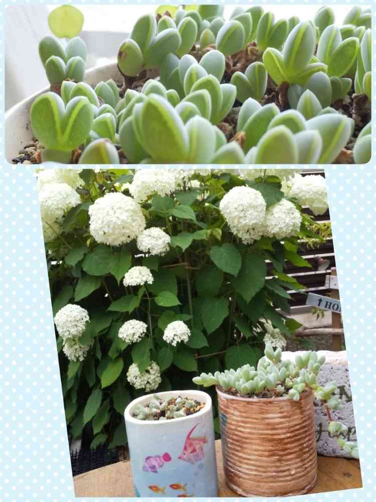 アナベル地植えは、お世話がラクチンだね(^^) 鉢植えアジサイは、お水毎日あげないとね💦