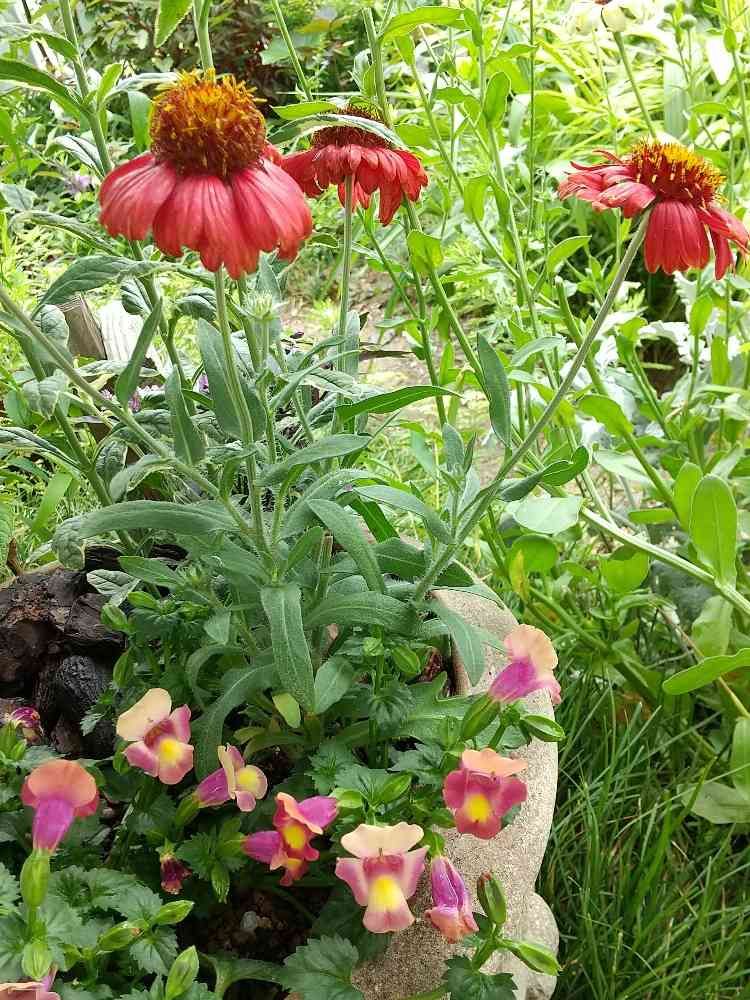 繁みの中のところどころに置かれた鉢植えが花壇のアクセントになっていて、足が止まります💞