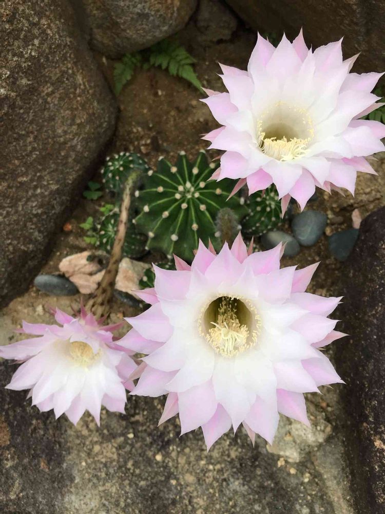以前から気になっていた石垣の間に植えられたサボテン。粋な事するなぁと思ってたが、今日通りがかると花が🌸。