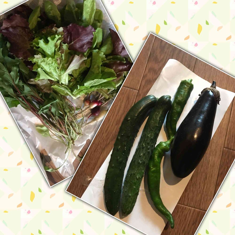 今晩から明日も雨☂️ということで畑で出来た食べられそうなくらいに育った野菜を収穫してきました🥒🍆🥬