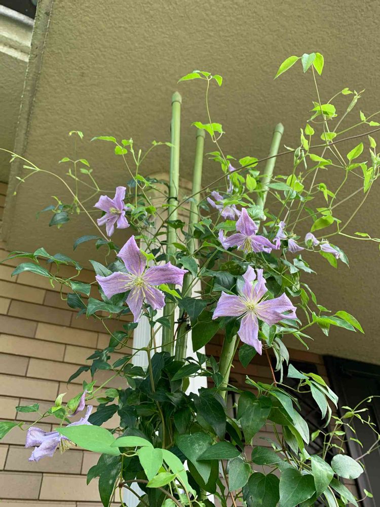 今年はいつもより小ぶりな5〜6センチくらいのかわいいサイズの花が咲いています。色もピンクに近い薄ムラサキです。クレマチスって、花の大きさが違うとまるで別の種類の花のようで楽しいです💕