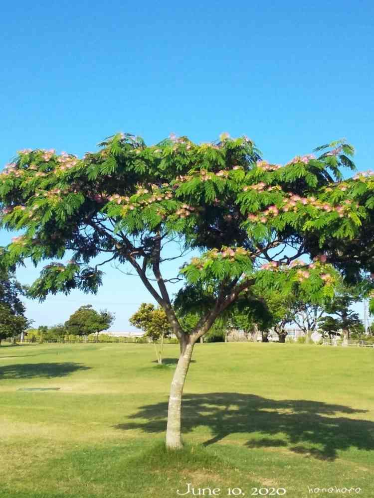 ねむの木で1番好きなのは、大きく広げた枝に花のあふれるこの姿です💕
