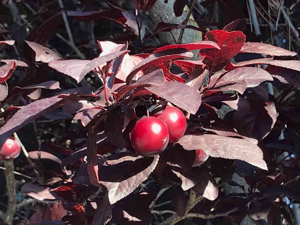 アメリカンチェリーはスーパーで買って食べます、パリっとした歯応えが日本のさくらんぼにはない旨さなのです、その木は見た事ないですが、赤銅色の渋い葉っぱですね、姿も良さそう、❀も見てみたいですね。