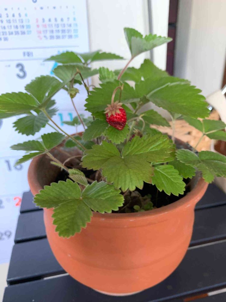 2023/12季節外れの小さなイチゴ🍓が実った。食べるには小さい。🍓から種を取って蒔いて育てた記録です。 ⚠️私がいちご🍓の種と思っていたツブツブは種ではなく、その中に種が入っていると知りビックリ。追記してます🙏。