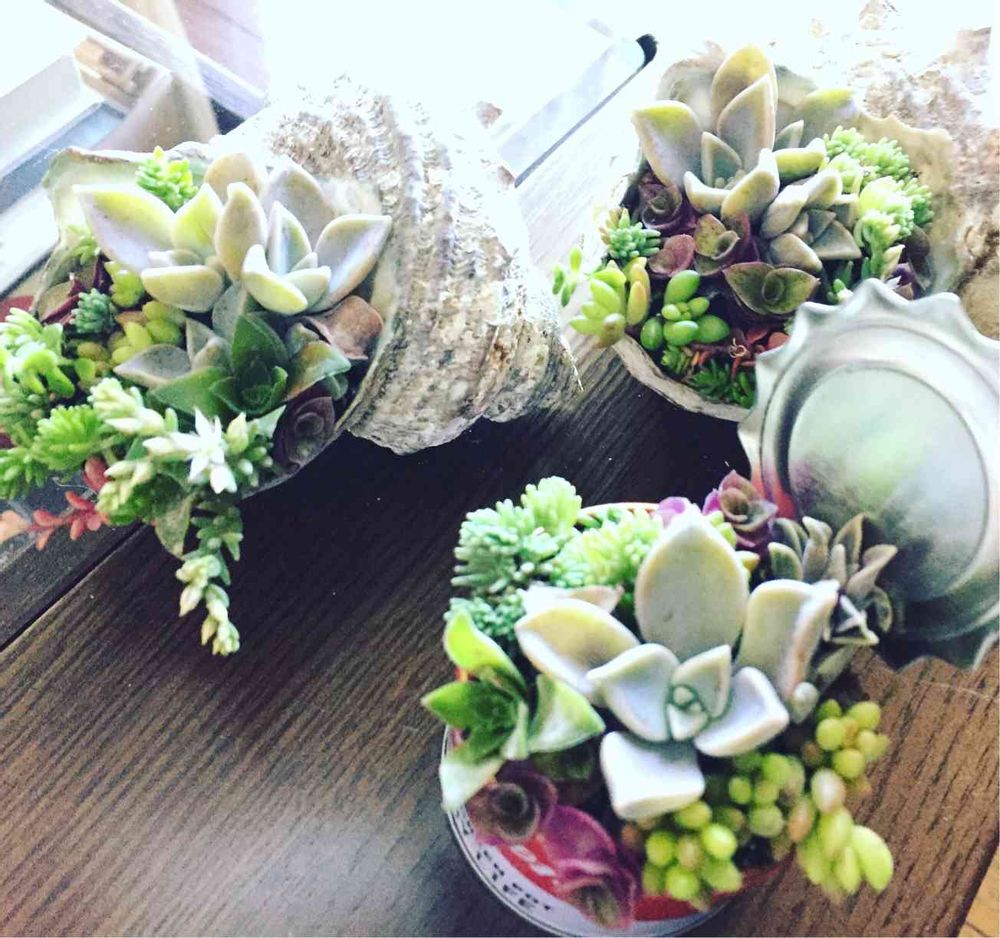 みんながお茶してる間にちまちま寄せ植え🌵💕