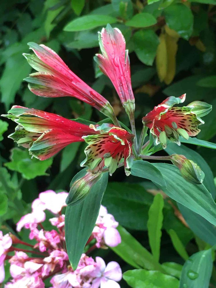 原種アストロメリアプルプレアです。庭にほったらかし。手入れ不要。抜いても次から次と出てくる。園芸店やホームセンターで見かけなかったので 誰かからわけてもらいました。赤と緑とヒョウ柄がいいですね。