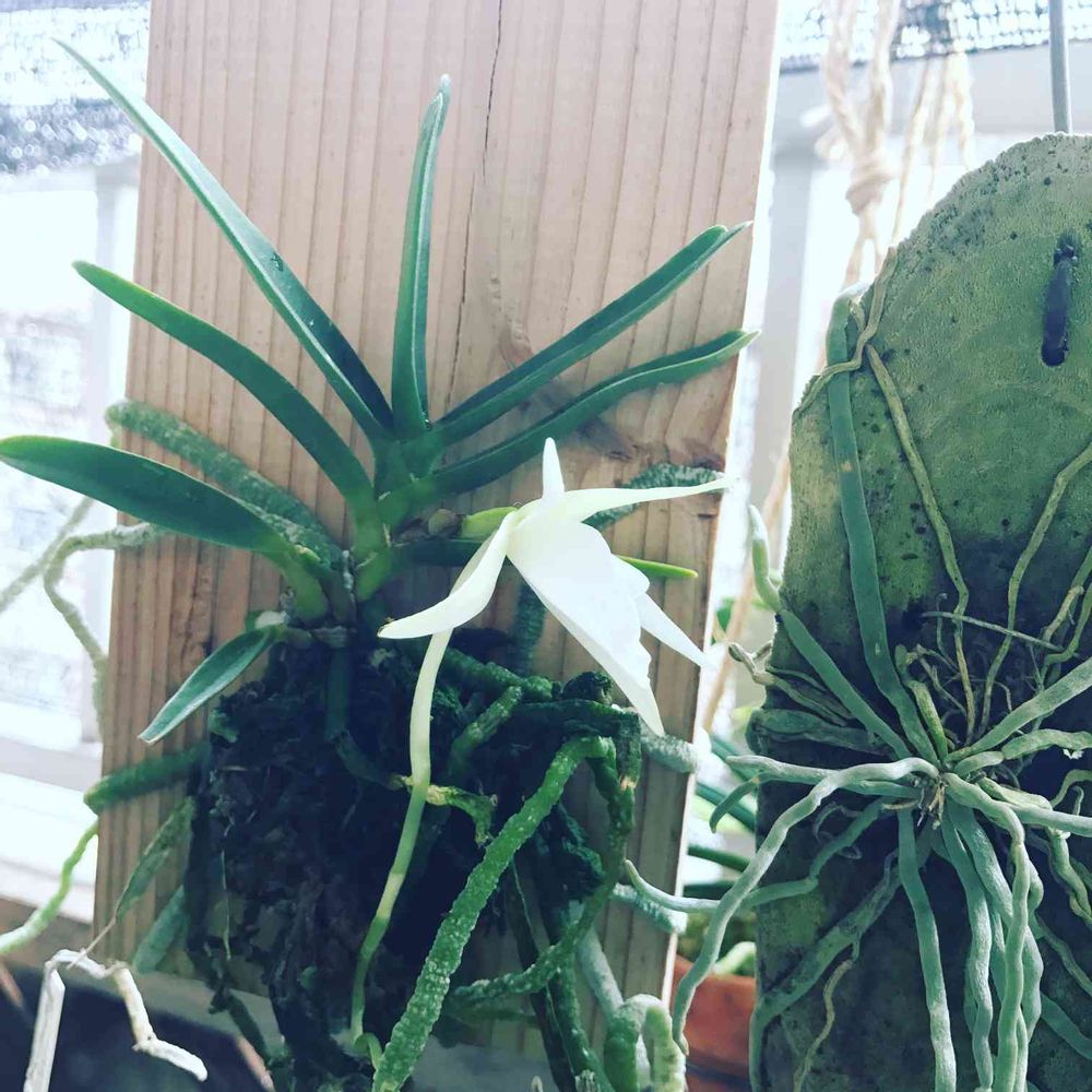 なぜか、伸びがわるく蕾が引っかかって動きがなかったアングレカム😑