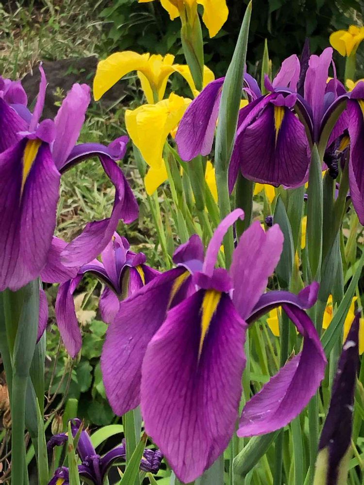 池だった所に植えた杜若と花菖蒲咲いています