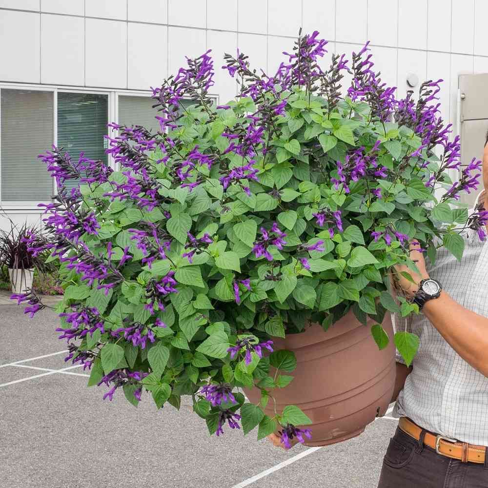 PROVEN WINNERSは、強くてながく咲く花苗を選抜して皆さまにお届けしています。購入時には、ラベルに記載の株幅を確認して、植える場所やプランターのサイズを検討してみてくださいね。ちなみに、このスーパーサルビアロックンロールの株幅は「60cm~70cm」!さすがの株幅です。