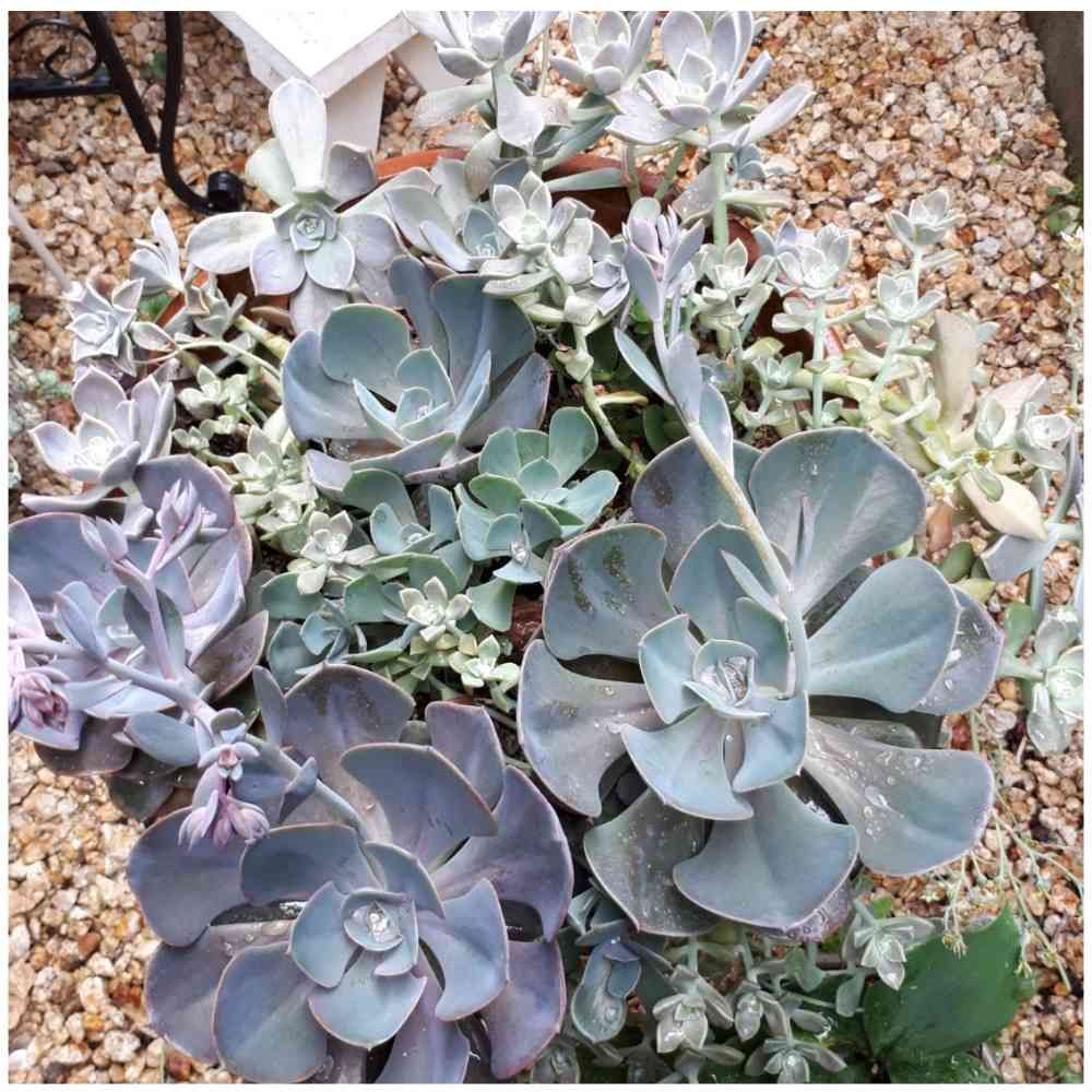 ダスティローズの葉っぱを2年程前に置いていたら葉っぱから三つ子が出て大きくなりすぎました💦姫朧月や朧月など強靭多肉の鉢になりました😆🌱