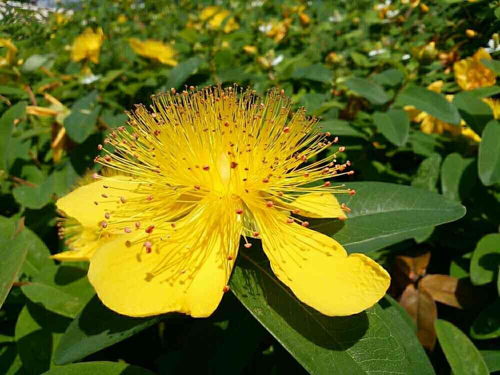 この直線的な雄しべはセイヨウキンシバイ(ヒペリカム・カリシナム)です😊