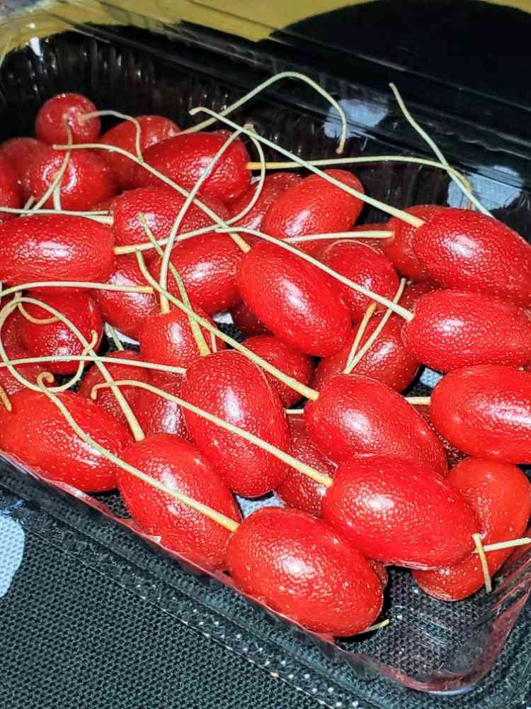 お菓子のグミみたいに甘いのを連想してしまいそうな形といい、色なんですが、食べると甘酸っぱい味なんですよ😁