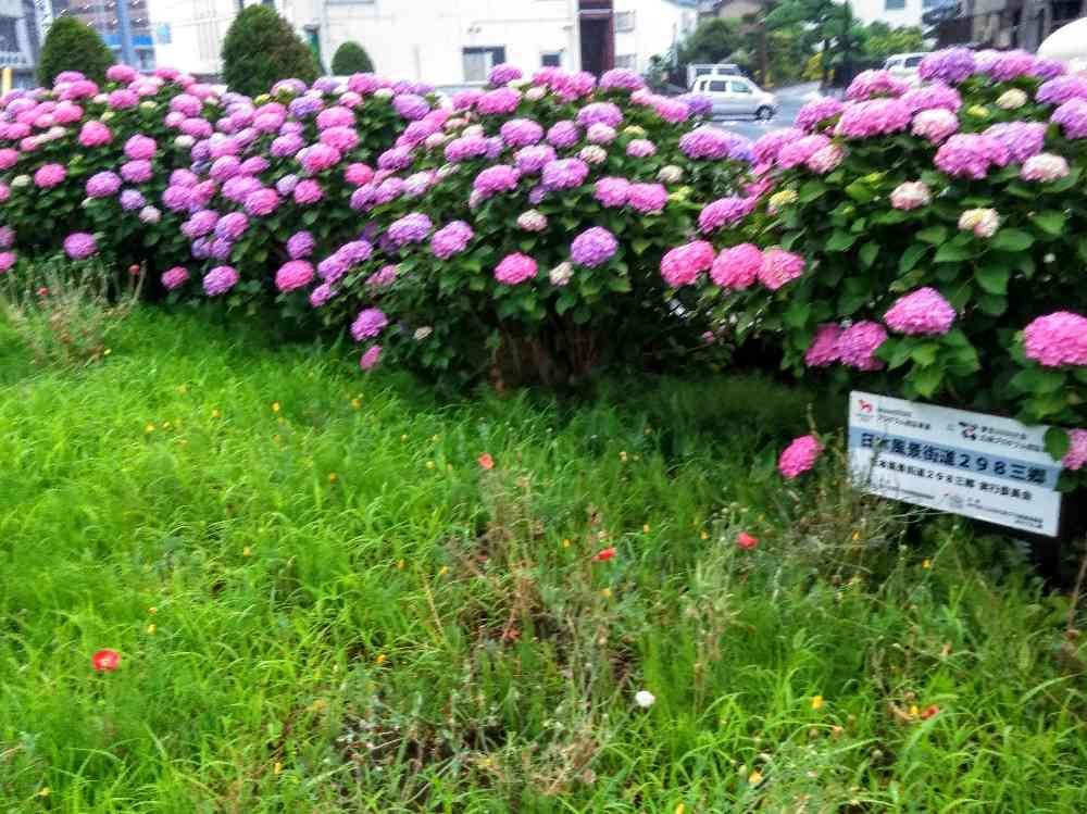 仕事帰りに、交差点の紫陽花を、☔の中🤳して来ました。
