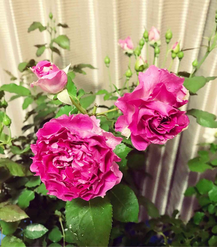 強風と大雨で、鉢バラの一部を部屋に避難させました😓
