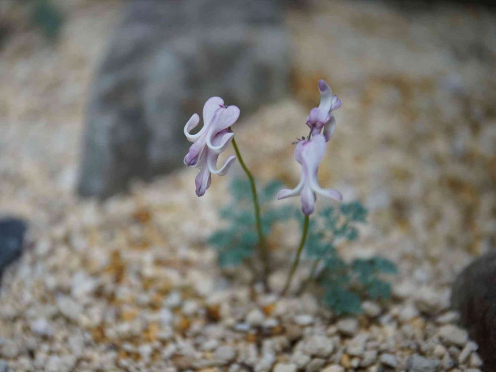 近くの公園の高山植物コーナーに、白いコマクサが咲いていました。今年は、コロナ自粛で山に行けそうもないので、山では出会えないでしょうね。