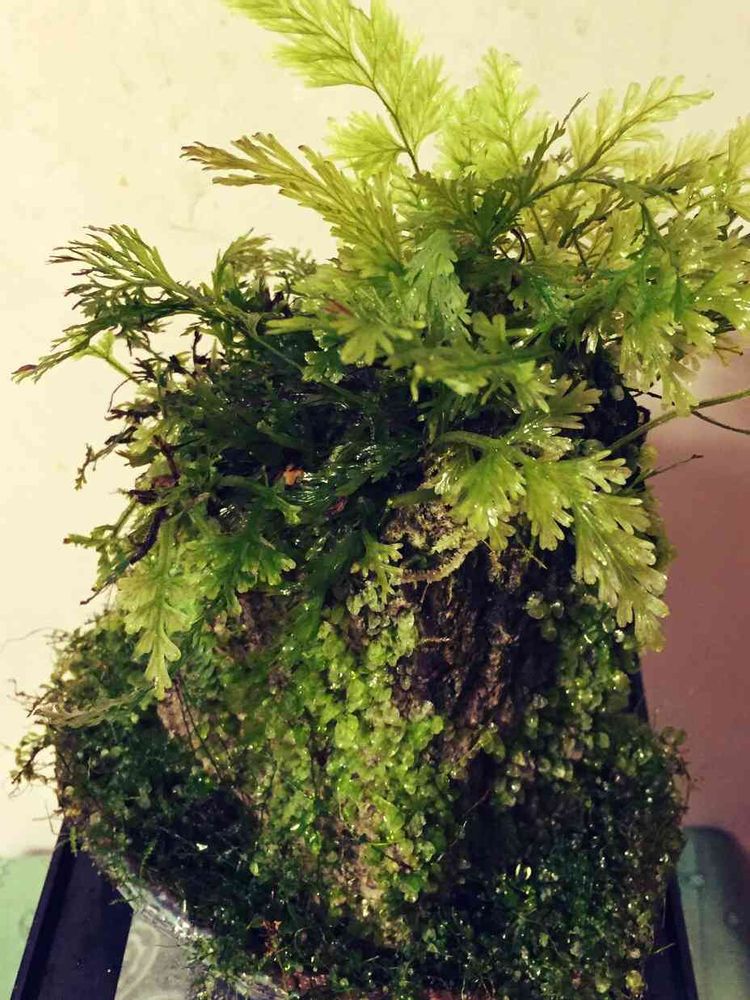 盆栽コンテストと聞きまして、2年前から草物盆栽を意識して作っているハイホラゴケを。普通の植物では考えられない域で高湿度を好むため水槽内で殆ど密閉状態で育てる事が原則ですが、一年中室内で育ちます。