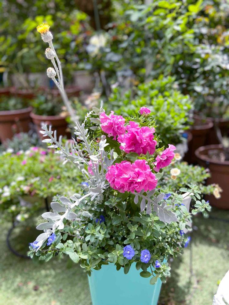ピンク💖が鮮やかで、小花のブルー💙と鉢が合ってます(灬♥︎ω♥︎灬)
