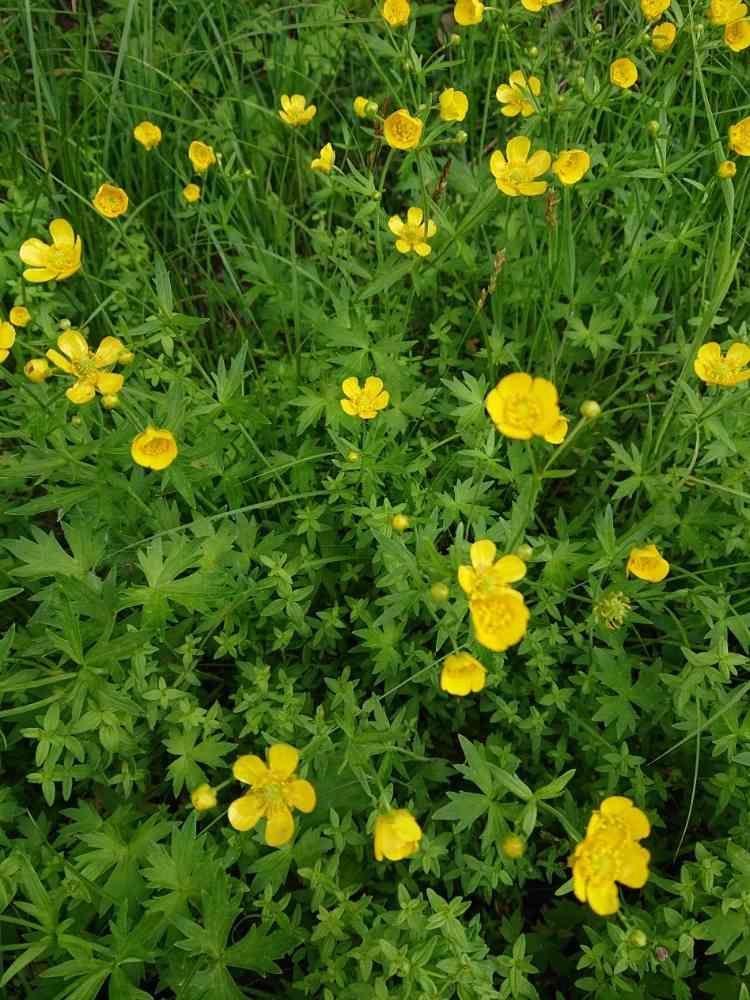 普通のキンポウゲを見たことがないので何が違うのかよくわからないのですが色々なところで群生しています😅