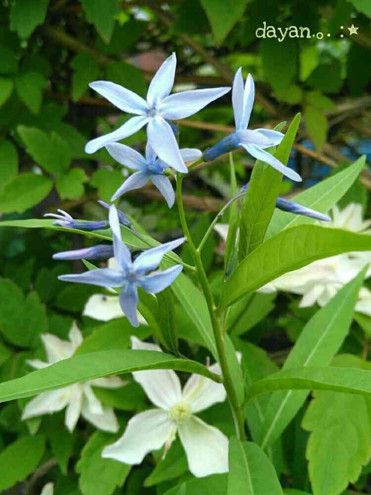 可愛い水色のお花ですね💙白のクレマチスとのコラボがとっても素敵🤍💙