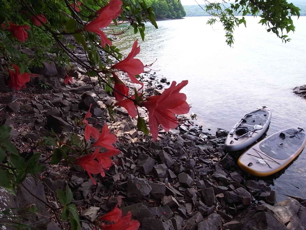 SUPで湖から上陸。