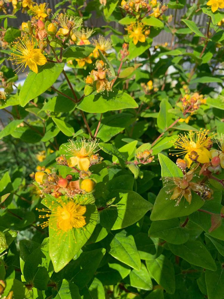 ヒペリカムが今年元気なのは、陽当たり良い塀に変わったからか、植え変えしたからか、剪定が良かったか?分からなくてすみません🙇♀️そういえば、掘り返した土を見て私はビックリ。質が悪かったのです。折をみて庭全体に肥料撒き、腐葉土撒き。少しずつですが、水捌け良くなるようパラサイト等や土再生も混ぜ込んでます。2年かけてやっとです😅