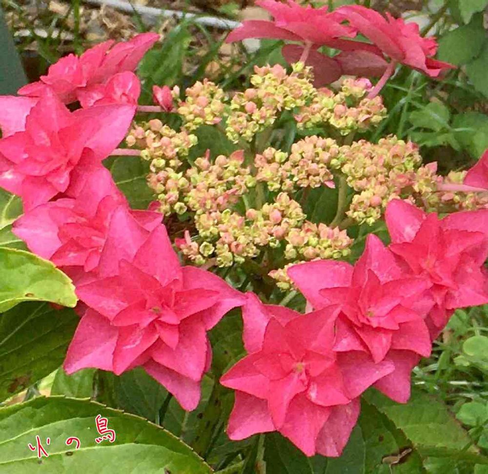 こんな鮮やかな色のガクアジサイ、初めて見ました。😎