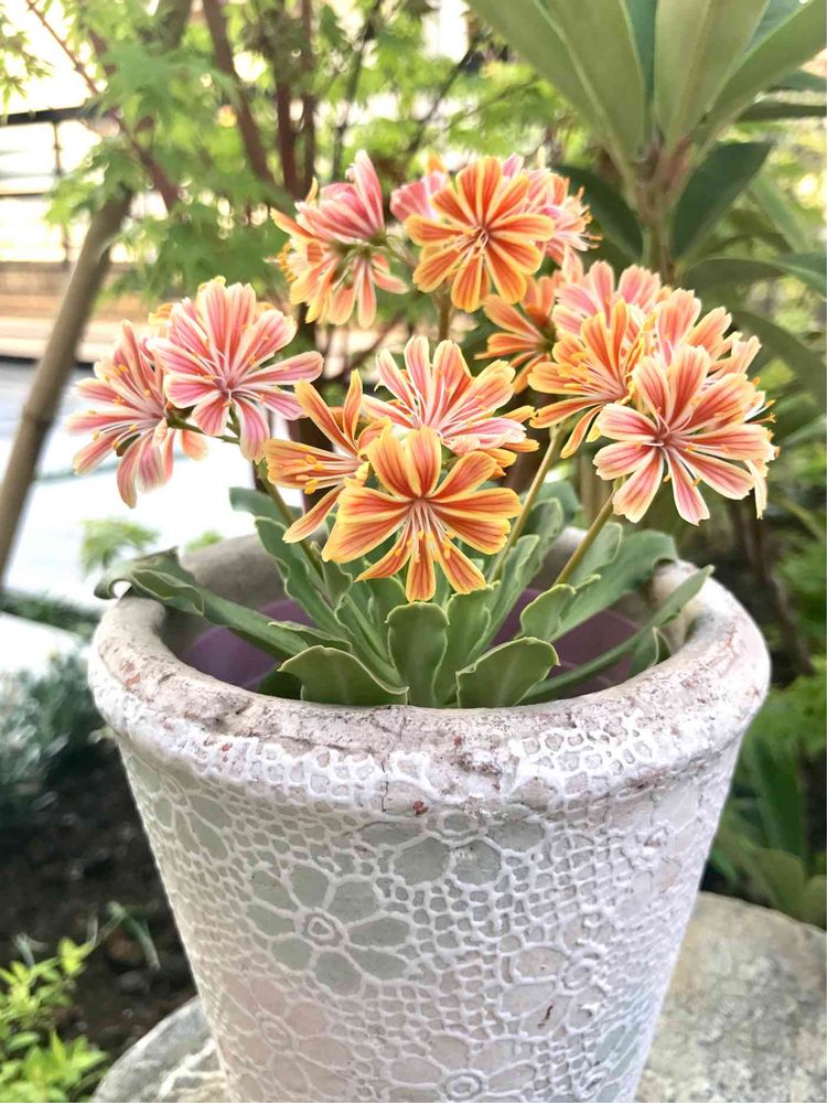 みみゆさんのお庭には素敵過ぎるお花がいっぱいですね♪ レウィシアのお花も鉢も可愛いよ~。