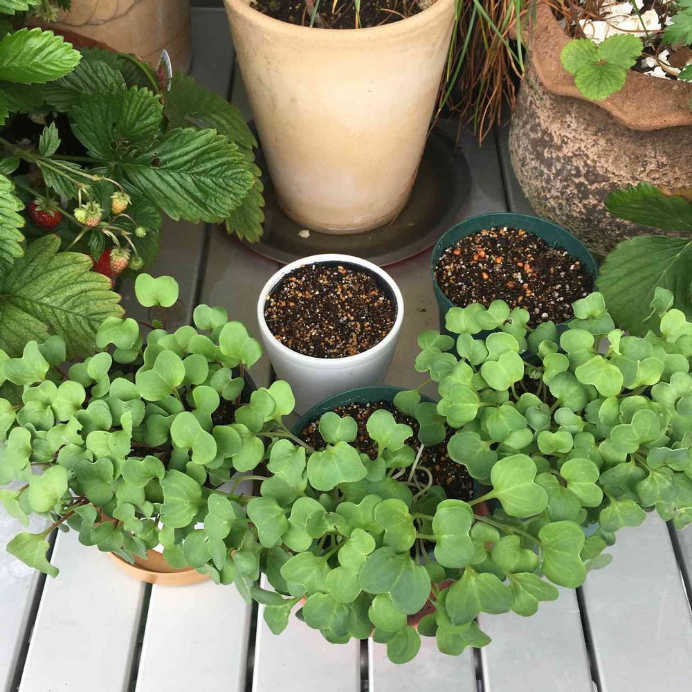 奥の2鉢両方に種まきしています。1つは種まき後水やり忘れ育っていませんでした。