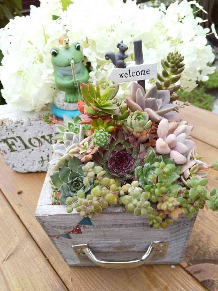 もりもりの寄せ植えとカエル🐸さんが