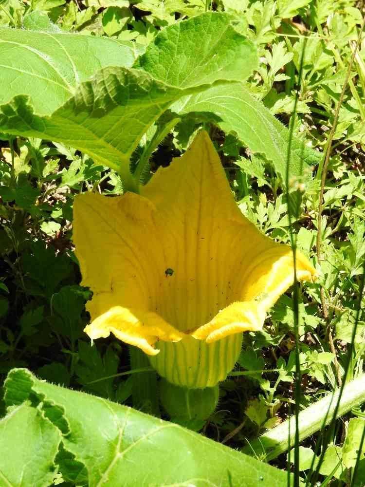 畑の中で咲く綺麗な黄色のカボチャの花🌻
