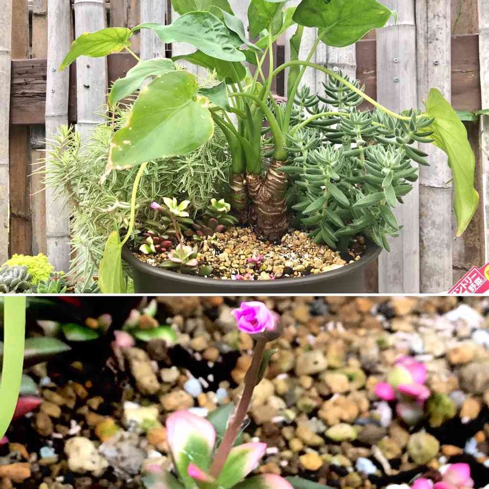 5/13に投稿したジャングル寄せ植え、ますます繁ってます😅手前は桜吹雪で茂るつもりが全然大きくならず、ほかの子がグイグイ伸びてます😌剪定した方がいいかもしれませんがまだ様子を見ていたい・・・