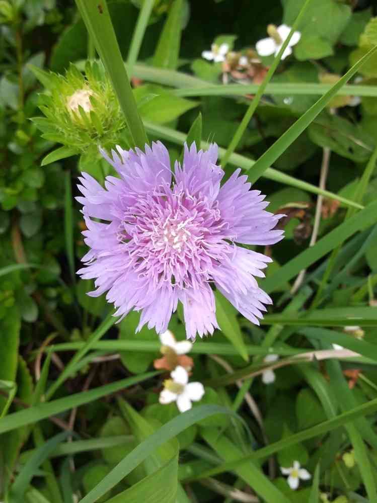 草むらの中で果敢に?咲いていた紫色の花。目立ってました。