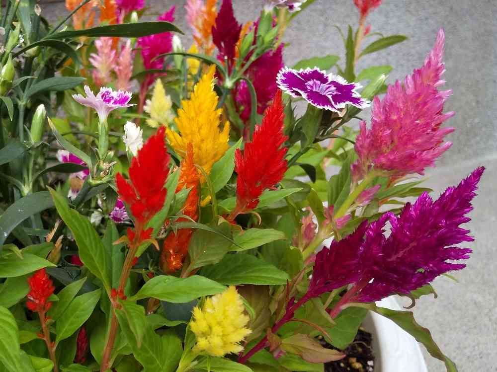 ケイトウミックスと撫子の寄せ植え完成しました〰️💖カラフルで楽しいです🥰
