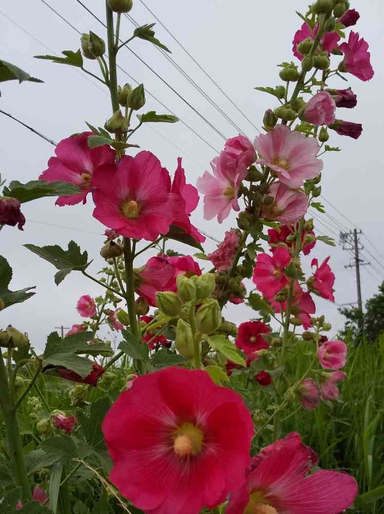 お散歩コース、少し足を延ばしてタチアオイに遭遇🥰可愛い🎵